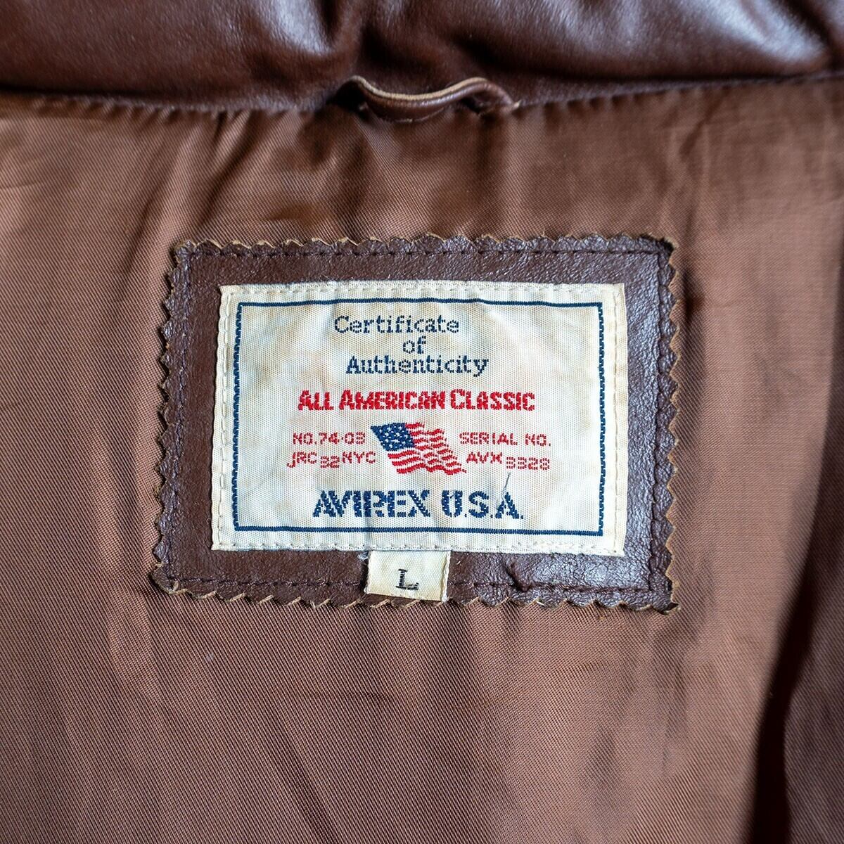【美品】AVIREX【レザー ダウン ジャケット】L ブラウン アヴィレックス 25110881