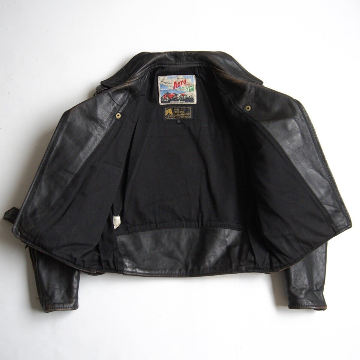 【雰囲気抜群】AERO LEATHER【ホースハイド レザー ダブルライダースジャケット】36 ブラック エアロレザー 25111073