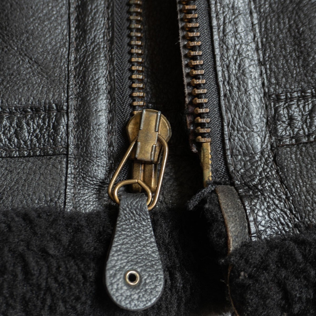 ボディには肉厚ながらモチっとした弾力性を持つ上質のシープスキン(羊革)が使用されております。裏地にはふかふかのムートンボアが敷き詰められ最高の着心地・防寒性を誇ります。