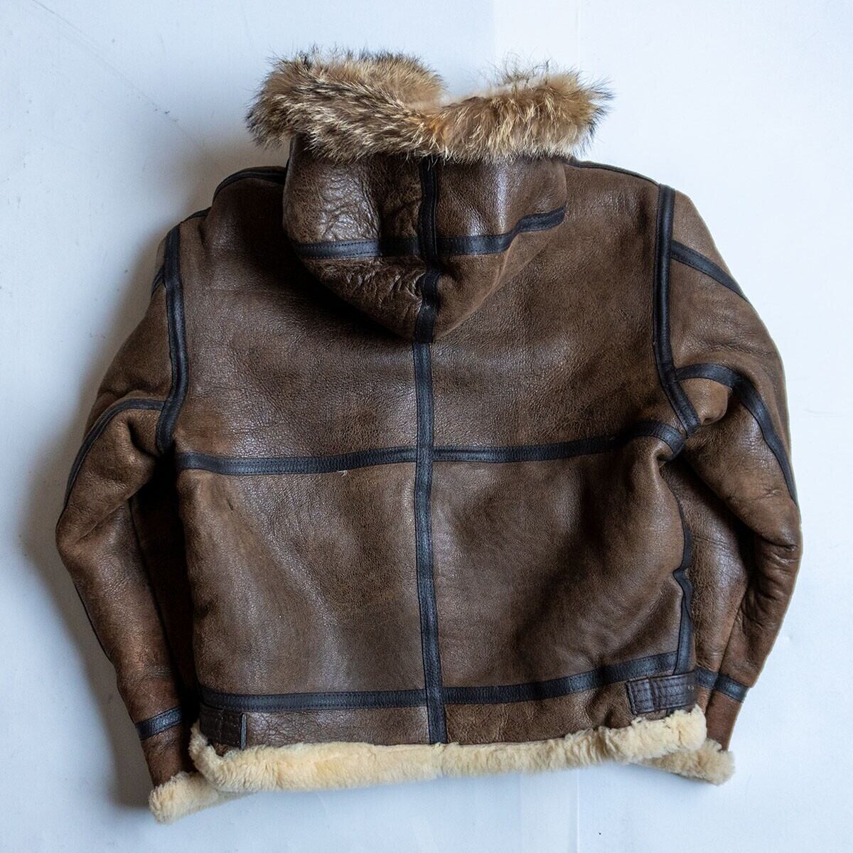 【美品/フード付き】AVIREX【B-3 ムートンボンバージャケット】38 ブラウン アヴィレックス フライト レザー ジャケット 25111254