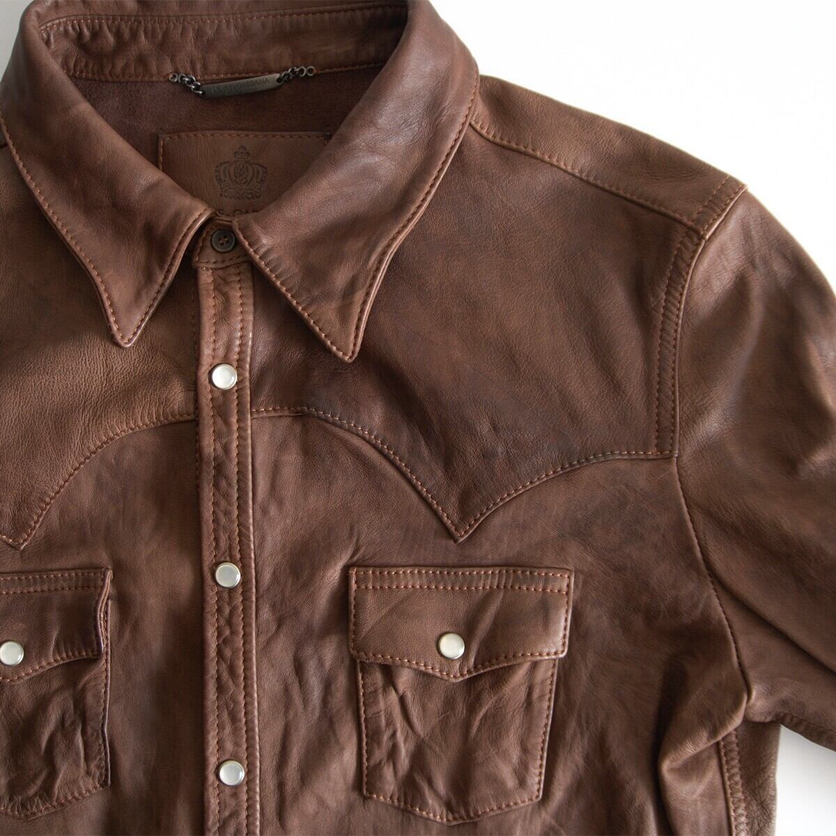 【ビッグサイズ54】DOLCE&GABBANA【シープレザー ウエスタンシャツ】ブラウン ドルチェアンドガッバーナ s2512011