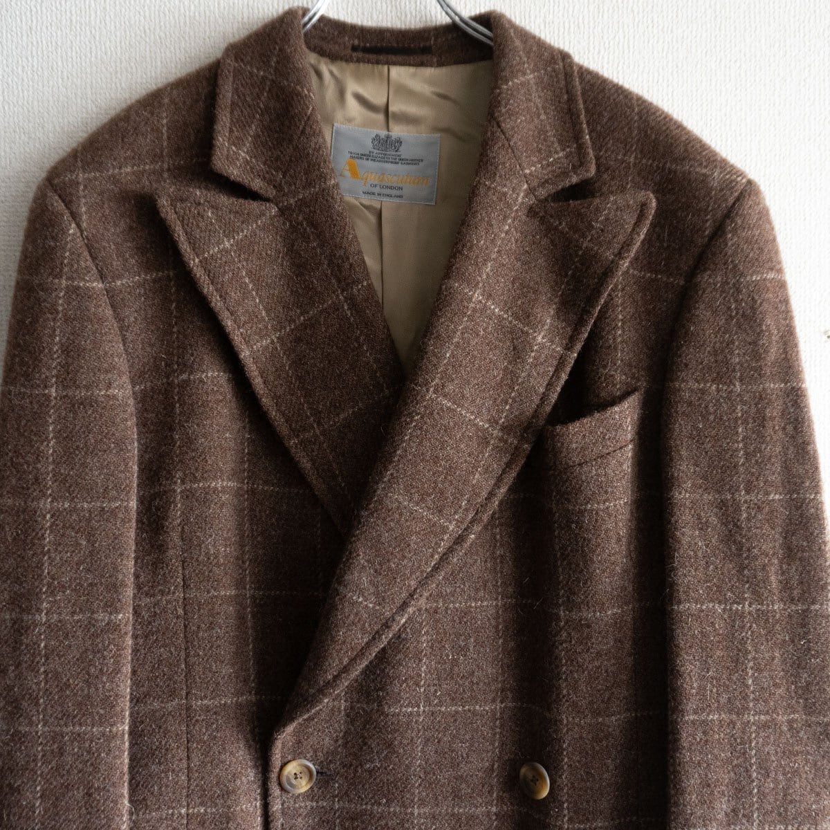 【80s~90s】AQUASCUTUM【ツイード ダブル コート】REG 38 イングランド製 アクアスキュータム 25110087