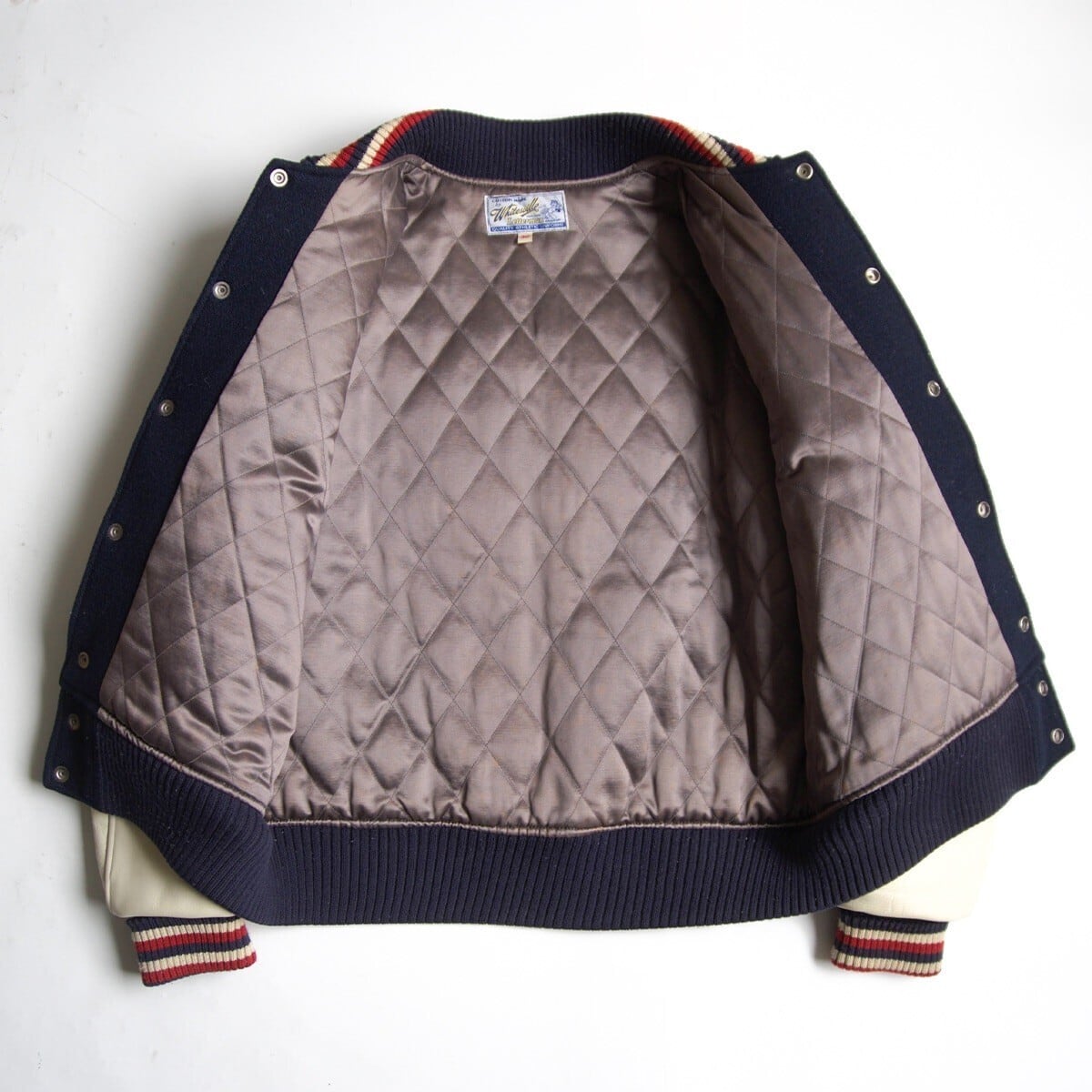 レザースリーブ仕様のスタジャン。雰囲気や風合いも抜群の一着です。お探しの方や気になる方は是非。
