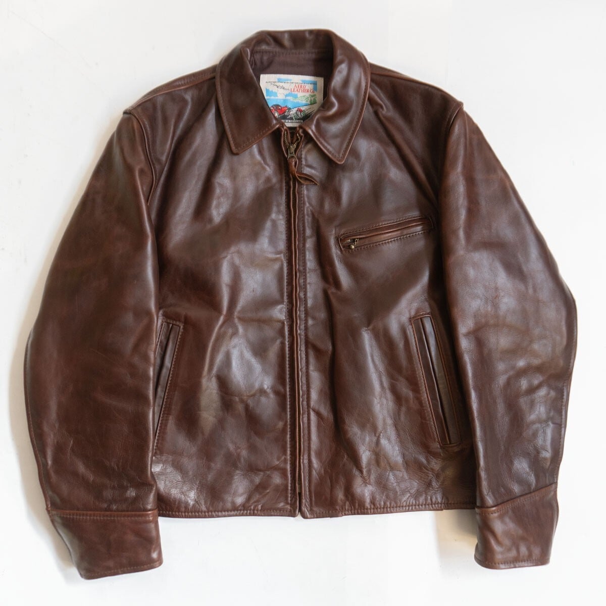 【美品/ビッグサイズ】AERO LEATHER【ハーフベルト ホースハイド レザー ジャケット】42 ブラウン エアロレザー 25120381