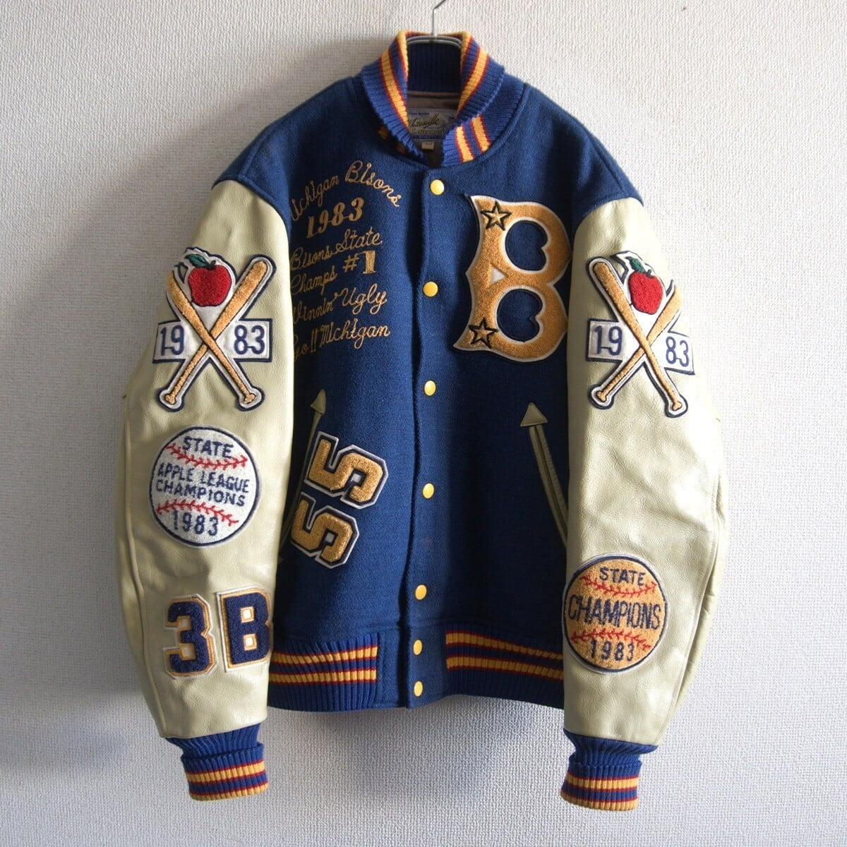 レザースリーブ仕様のスタジャン。雰囲気や風合いも抜群の一着です。お探しの方や気になる方は是非。