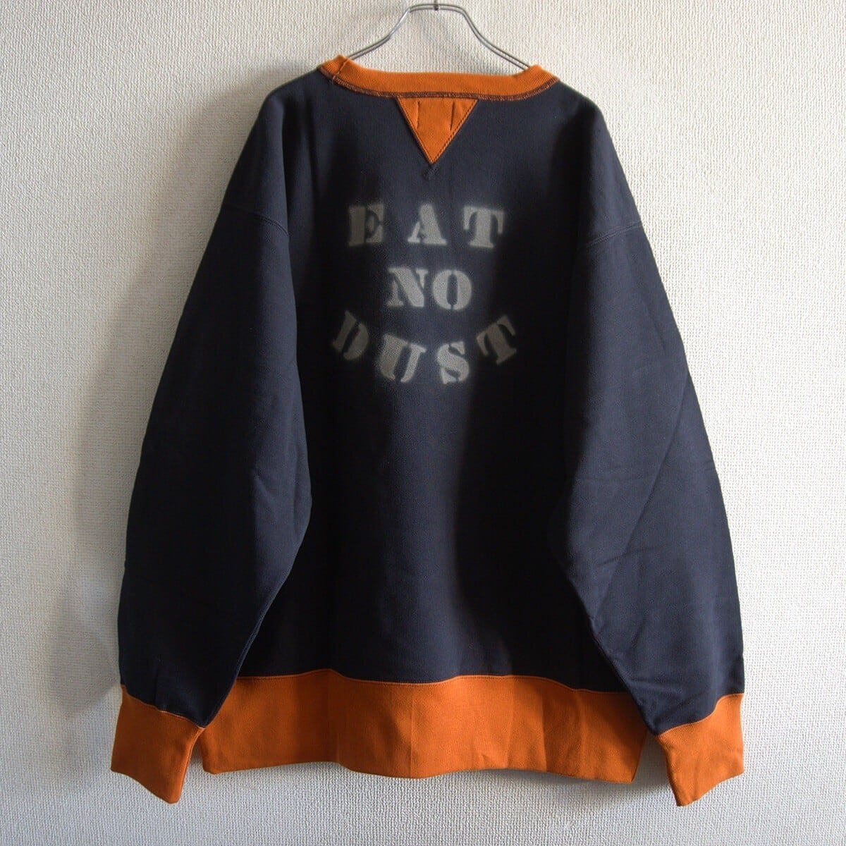生地のウェイトはミディアムになり、程良い肉感のある裏起毛のスウェット生地を使用しております。両V、セットインスリーブ、縫製は二本針、ボディは剥ぎがあるデザイン。2トーン仕様。