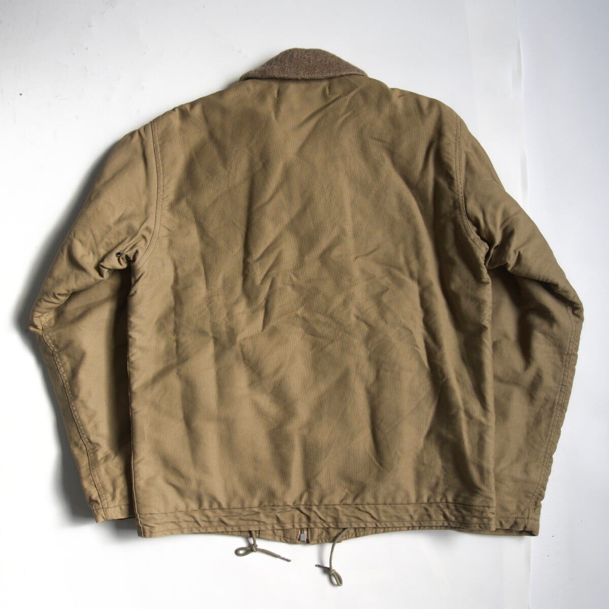 第二次世界大戦から朝鮮戦争にかけ米海軍の艦艇乗員用として採用されたN-1デッキジャケット。こちらの表素材には他のデッキジャケットと同様で通称"ジャングルクロス"と呼ばれるコットングログランが使用されております。