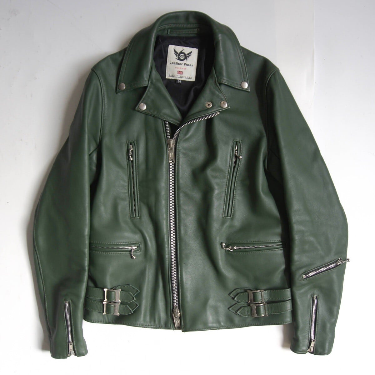 上質なステアハイドを使用した一着です。お色はグリーン。