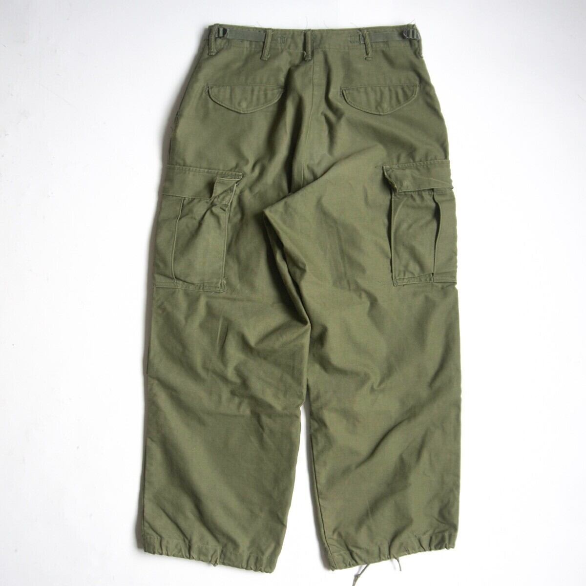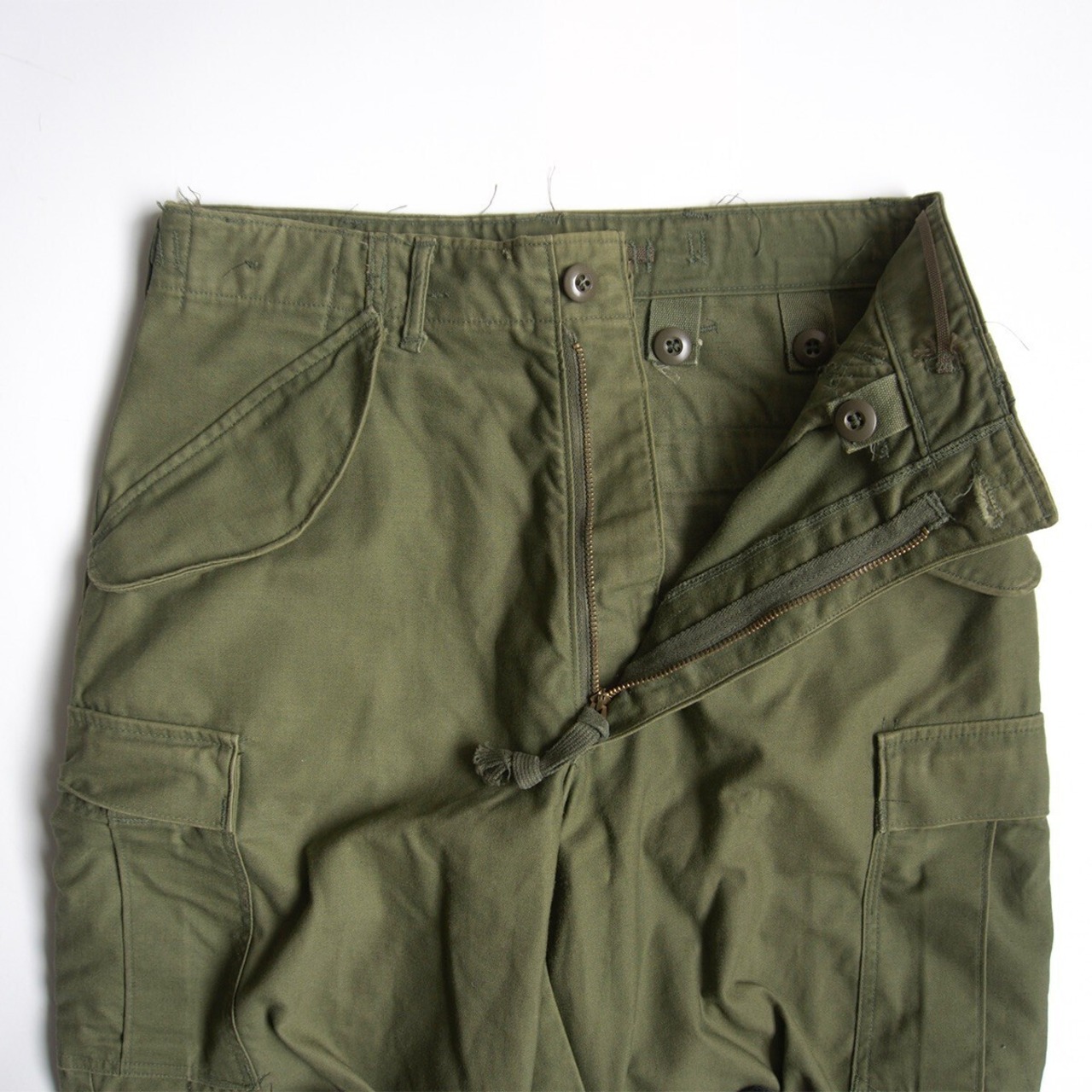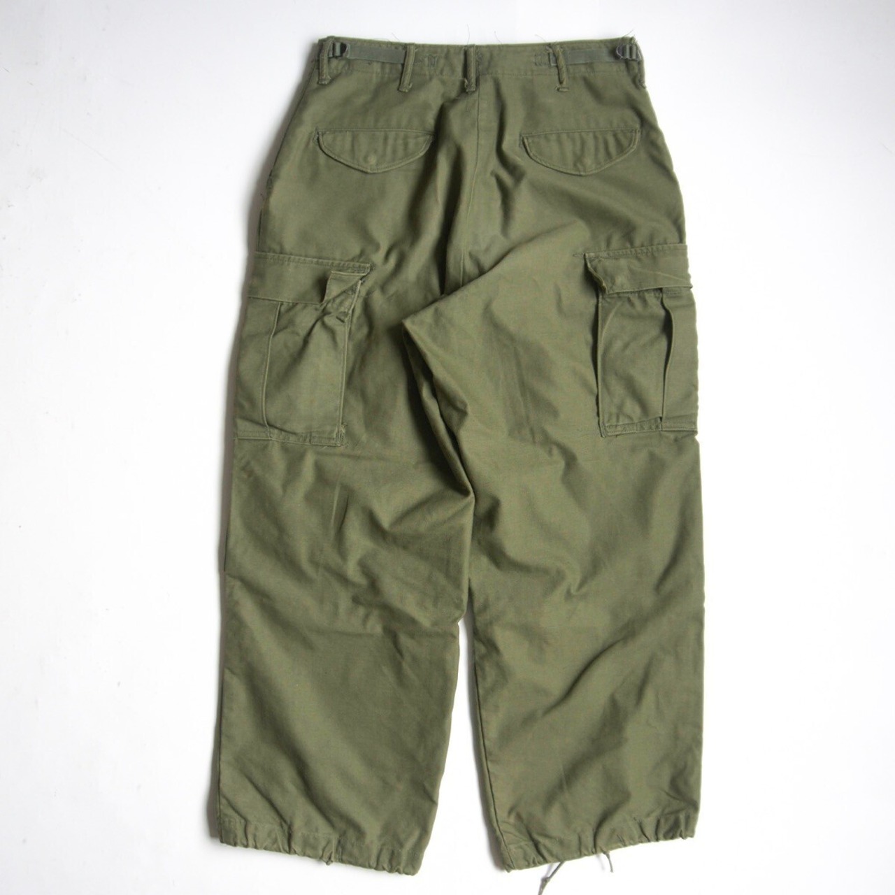 アメリカ軍が1965年に採用したフィールドパンツ M-65。多くのブランドがこれを元にカーゴパンツをリリースしています。ズドンとしたストレートシルエットが魅力です。計6つのポケット。全てフラップ付きでスナップボタンで留められます。ジッパーフライ、ウエストのサイド部分にはアジャスターが付いています。お探しの方や気になる方は是非。