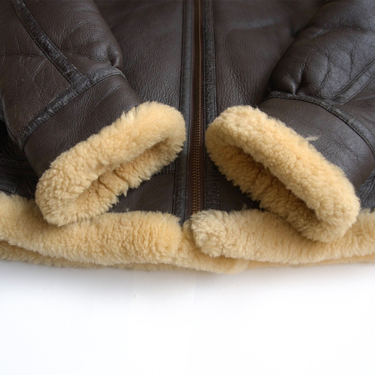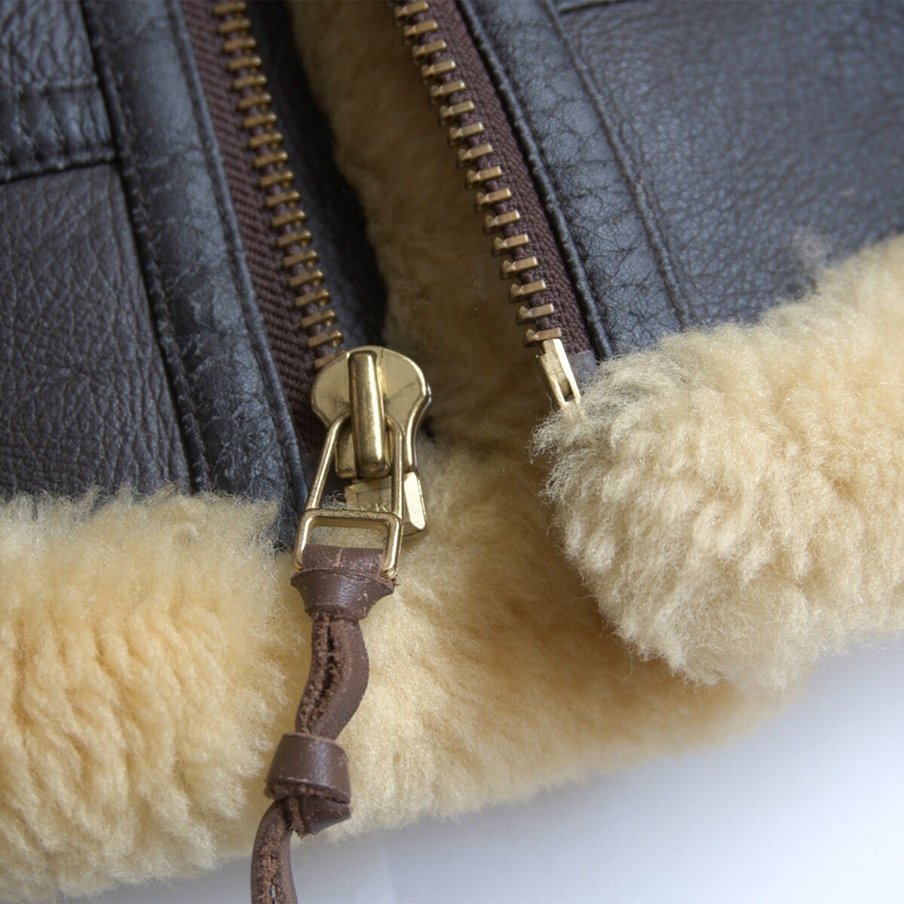 ボディには肉厚ながらモチっとした弾力性を持つ上質のシープスキン(羊革)が使用されております。裏地にはふかふかのムートンボアが敷き詰められ最高の着心地・防寒性を誇ります。