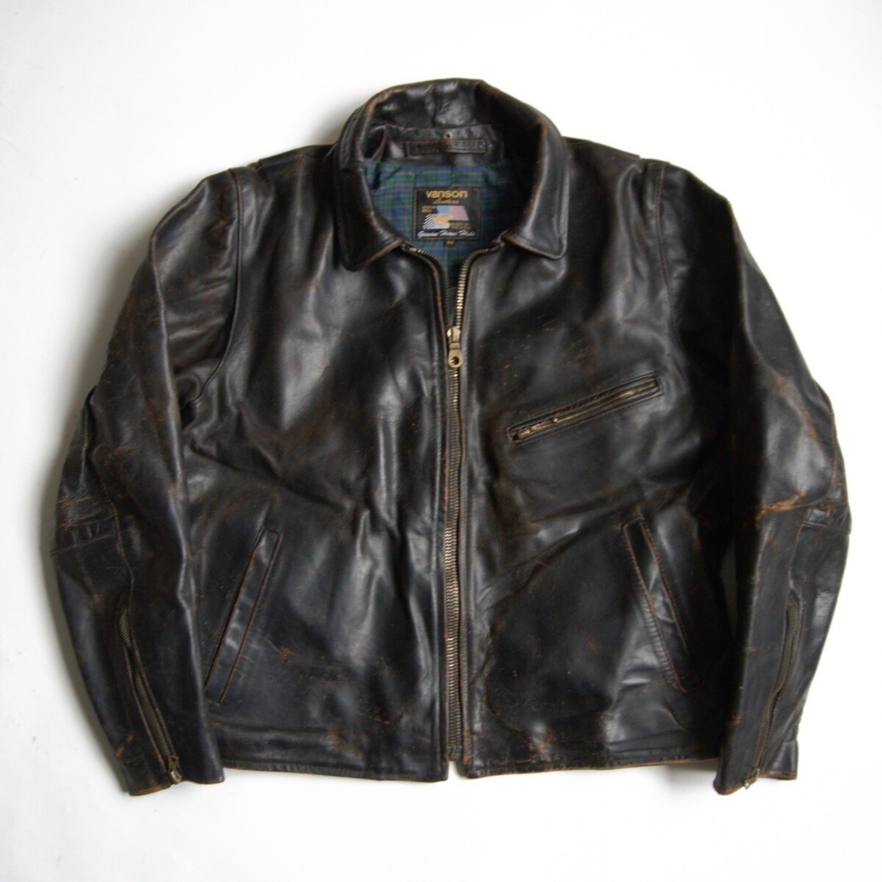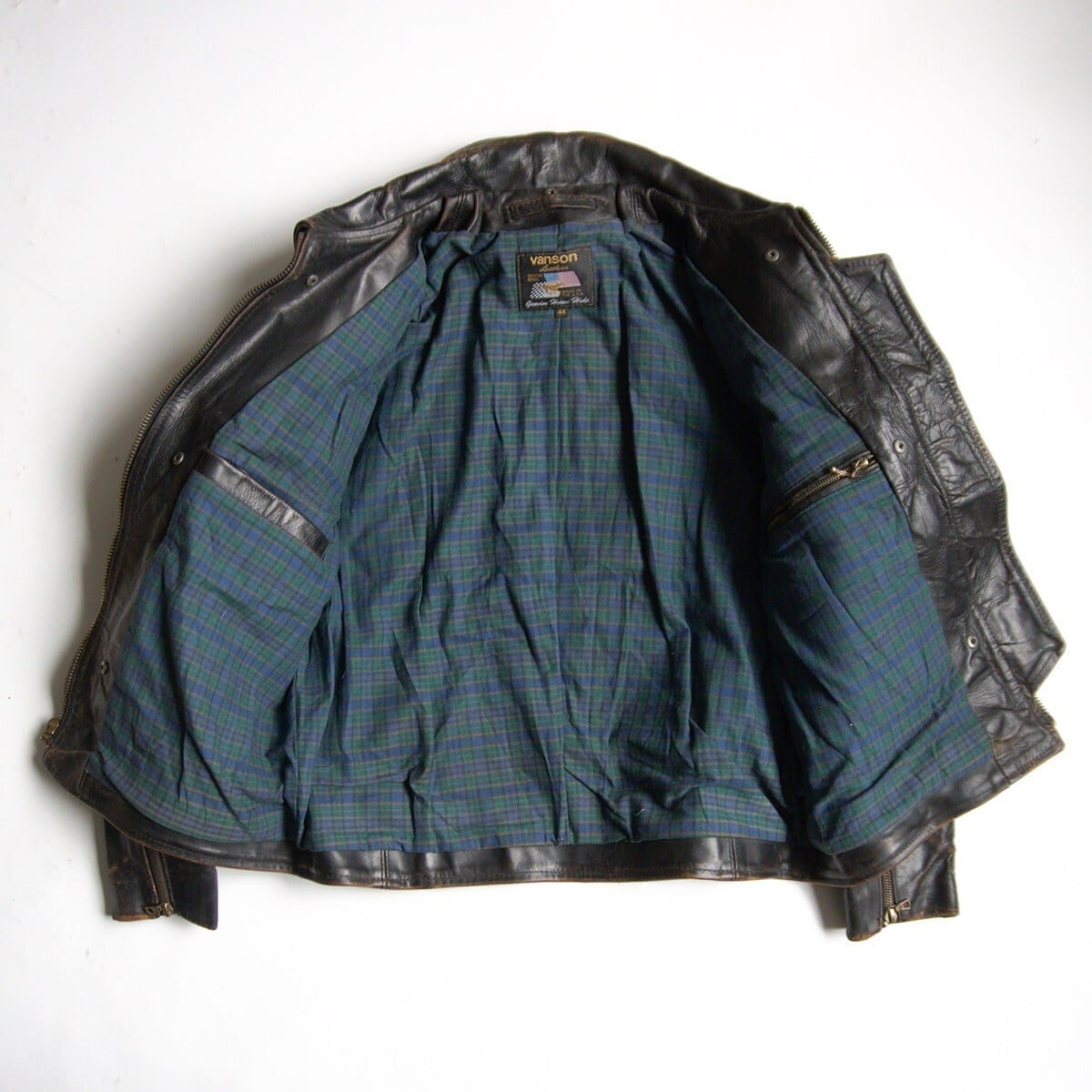 【ホースハイド/ビッグサイズ】 VANSON 【ENF エンフィールド シングルライダースジャケット】44 レザー USA製 バンソン 25120605