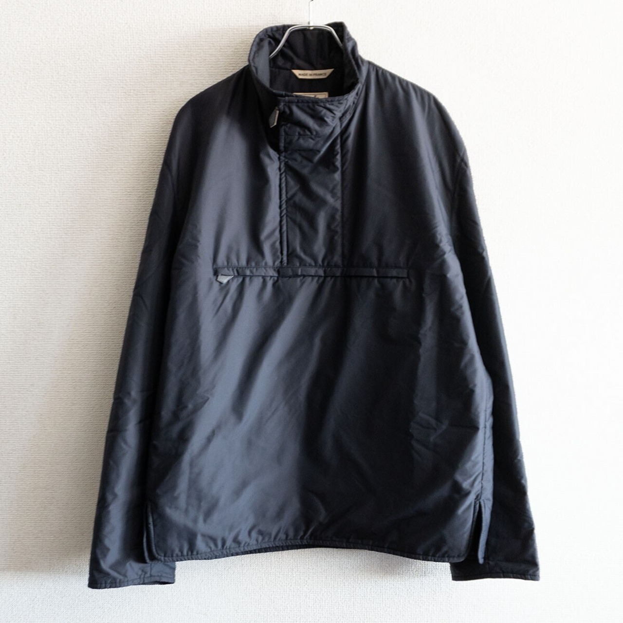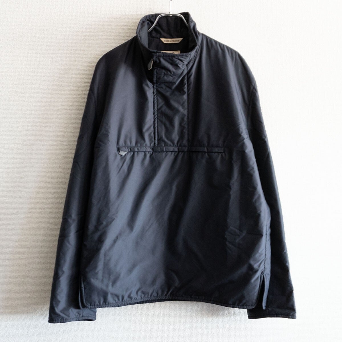 軽い着心地の中綿入りナイロンプルオーバージャケット。ボックスシルエットで、両サイドにスリットが入っています。またジップの引き手にレザーを使用。細部にまで手の行き届いた1着。お探しの方や気になる方は是非。