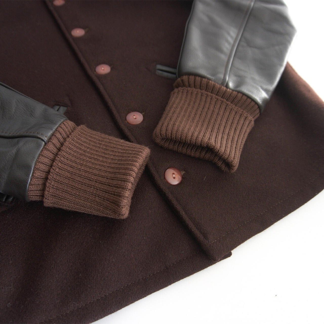 【美品】SKOOKUM【メルトン×レザー スタジャン】L スクーカム ブラウン ジャケット 25120707