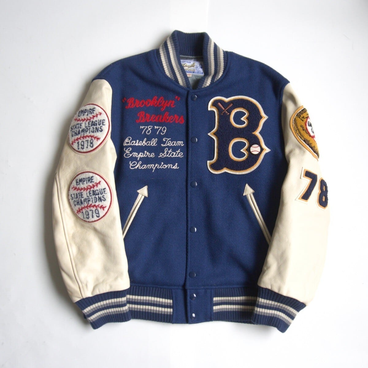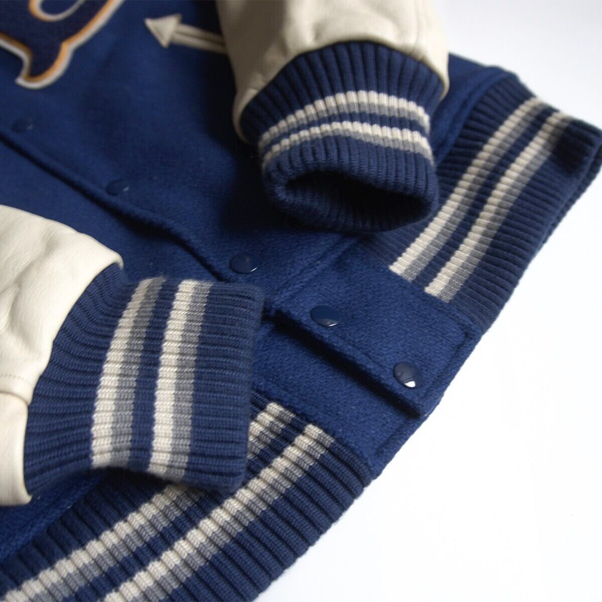 レザースリーブ仕様のスタジャン。雰囲気や風合いも抜群の一着です。お探しの方や気になる方は是非。