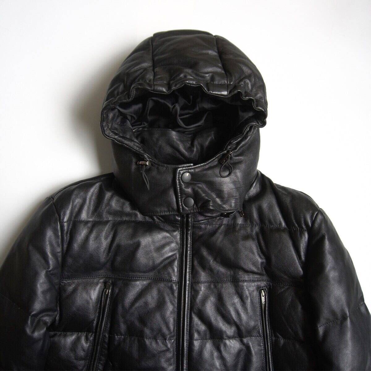 【美品】WIND ARMOR【フード付き レザー ダウンジャケット】M ブラック ウインドアーマー 26010124