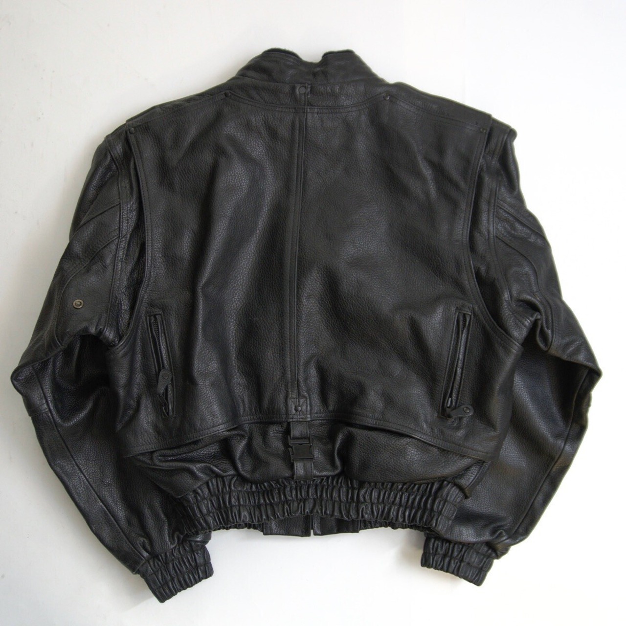 肉厚な牛革を使用したライダースジャケット。取り外し可能なライナーが付いています。お色はブラックです。お探しの方や気になる方は是非。
