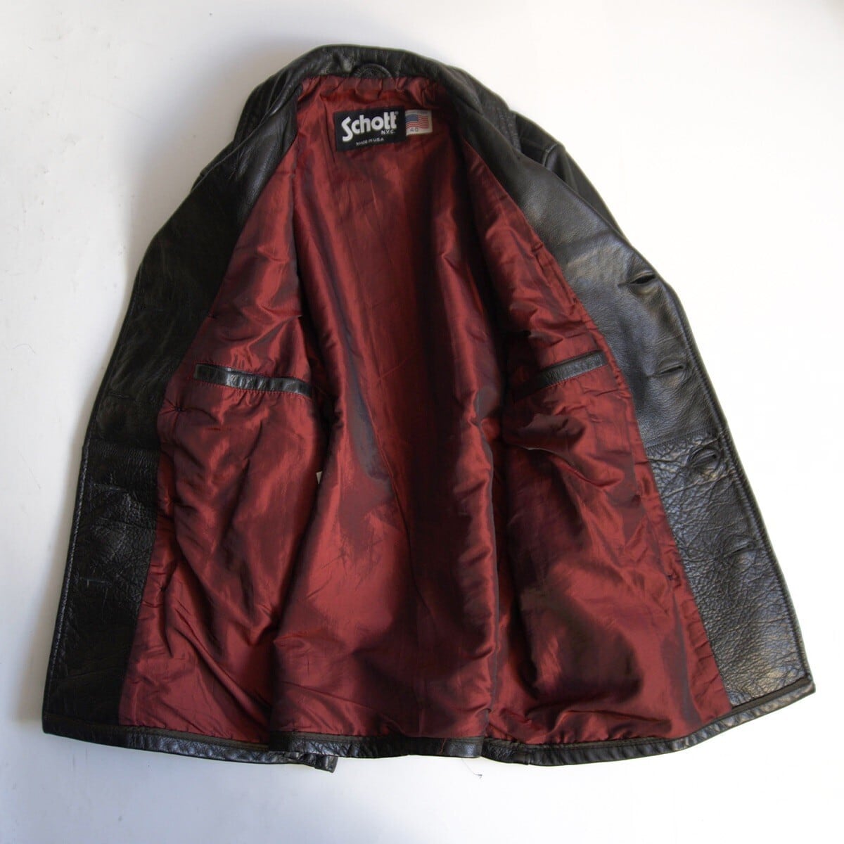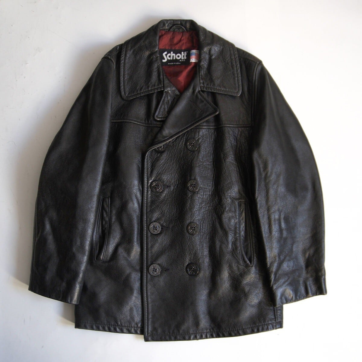 【美品/オーダー品】SCHOTT【AT140/レザー ピーコート】40 ブラック レザー アメリカ製 ショット 26010239