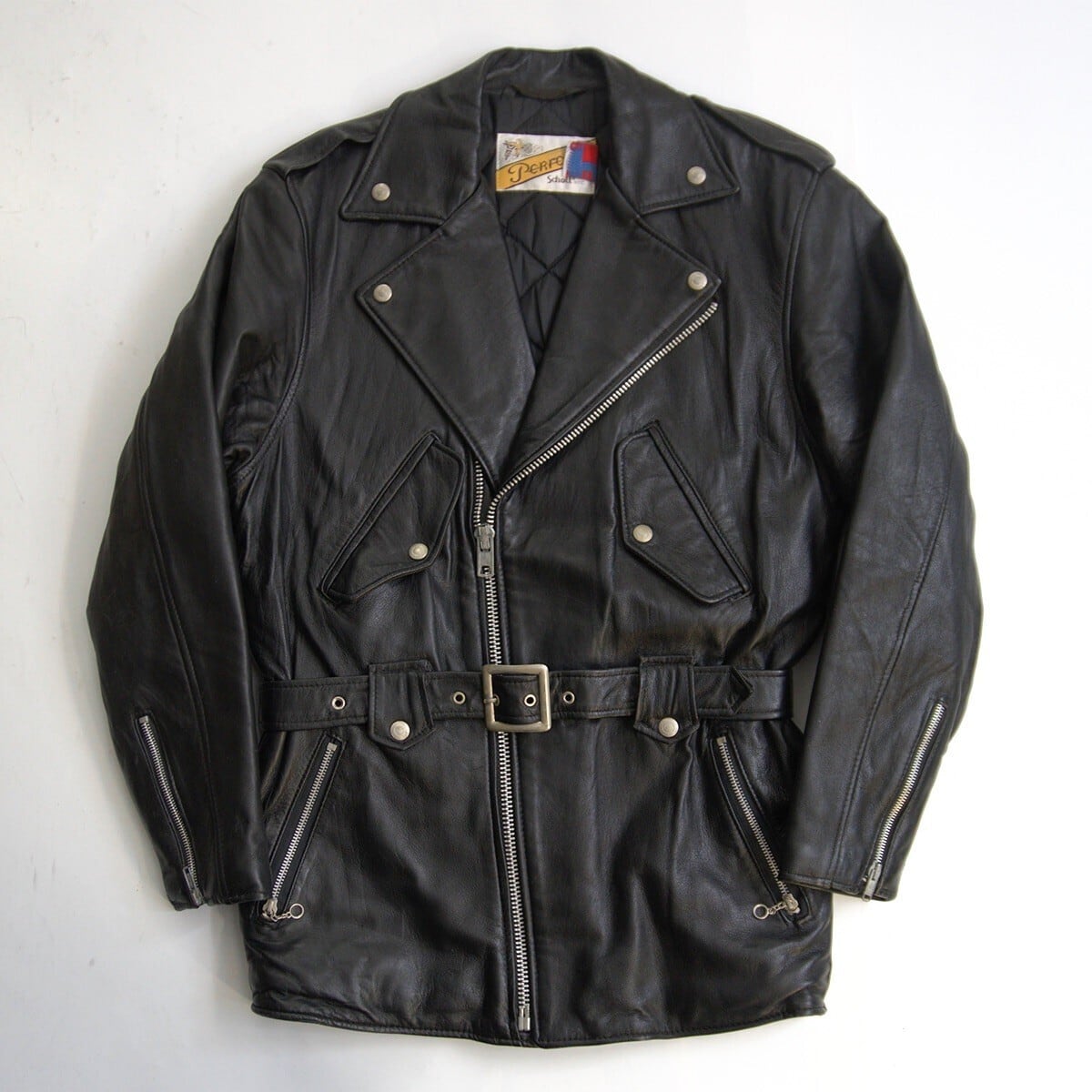 SCHOTTの代名詞的存在であるダブルライダースジャケットをロングにしたようなモデル。こちらは柔らかく軽い着心地のラムレザーを使用。お探しの方や気になる方は是非。