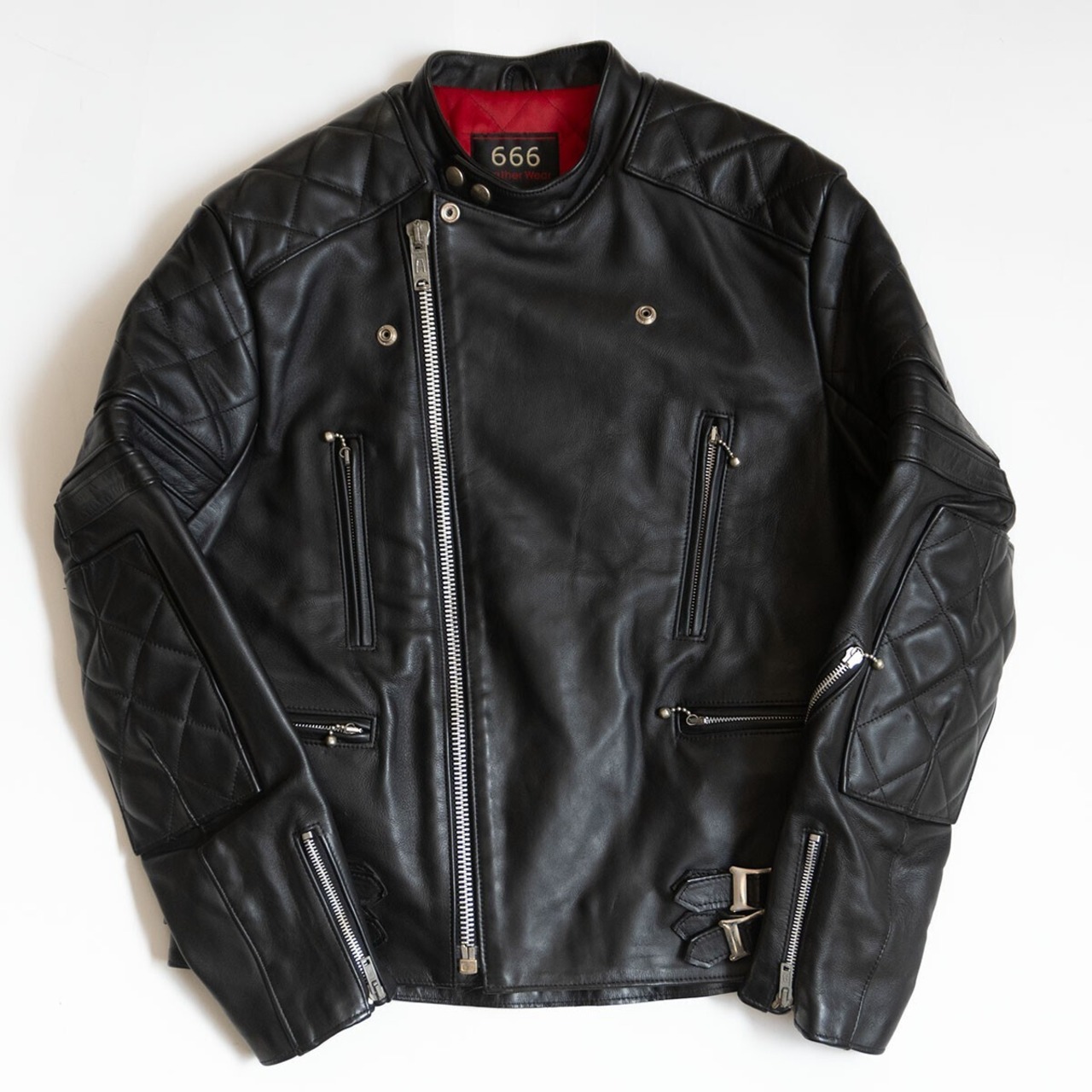 【美品】666 triple six【ステアハイド パデッド ライダースジャケット】38 レザー トリプルシックス 26010339
