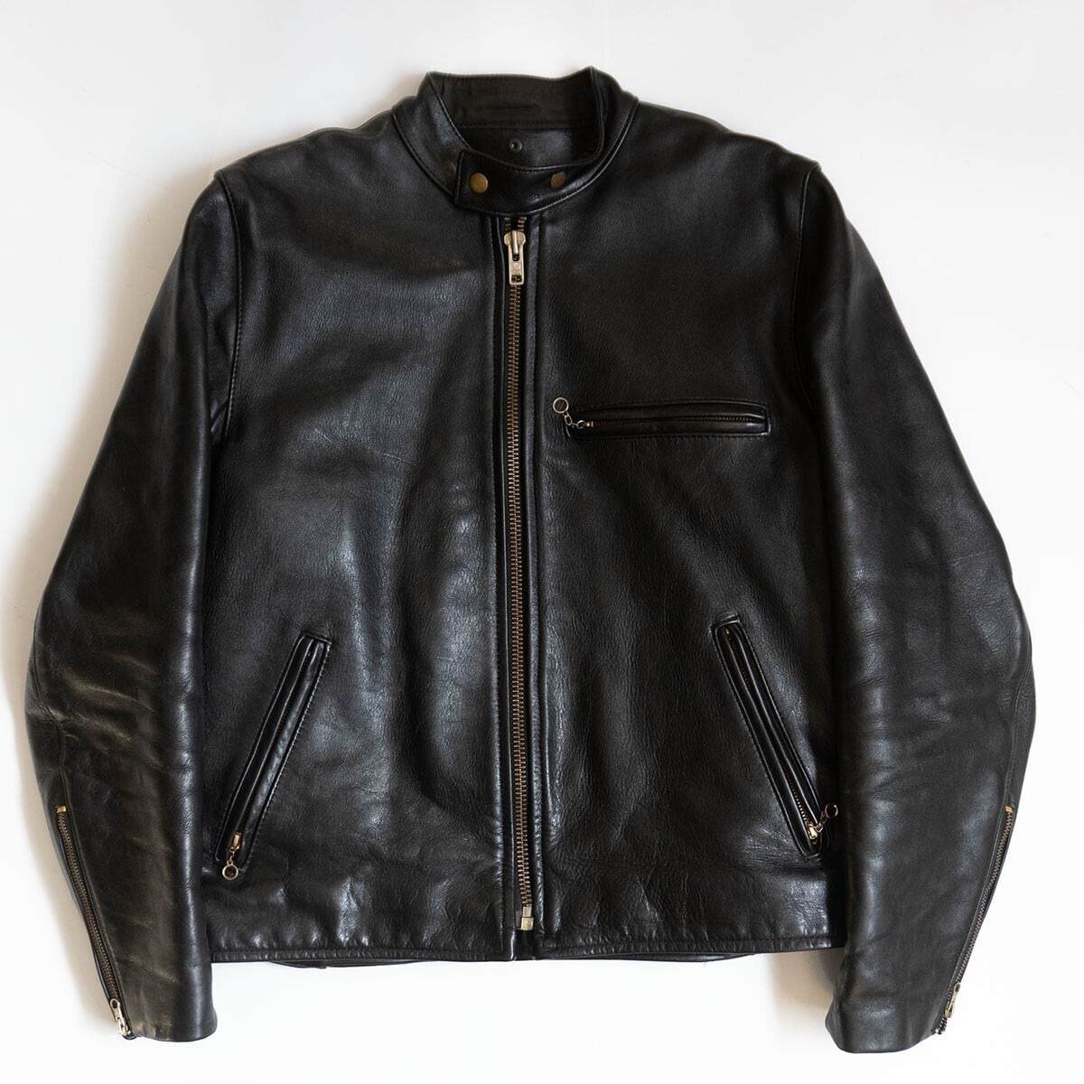 バンソンの数あるラインナップの中、最もベーシックかつポピュラーなモデルです。最大の魅力はバンソンの象徴とも言えるコンペティションウエイトレザー。独特の光沢を放つクローム仕上げのトップグレインカウハイドは着込む程に体に馴染み、自分だけのエイジングを楽しむ事が出来ます。内側はレーヨンライニングで、取り外し可能なフリースライニングが付属。