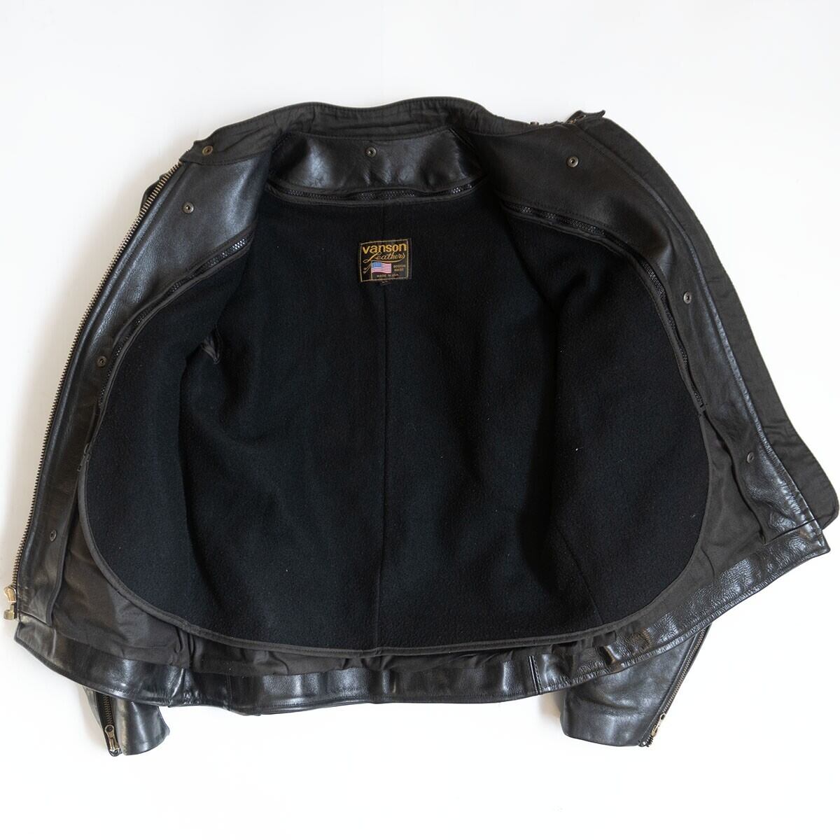 【美品/ビッグサイズ】 VANSON 【MODEL B シングルライダースジャケット】44 レザー ライナー付き USA製 バンソン 26010302