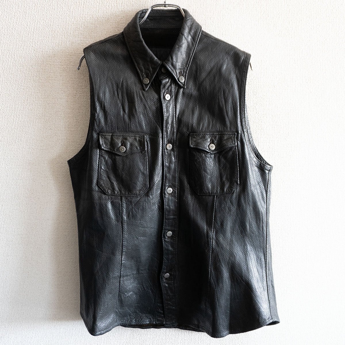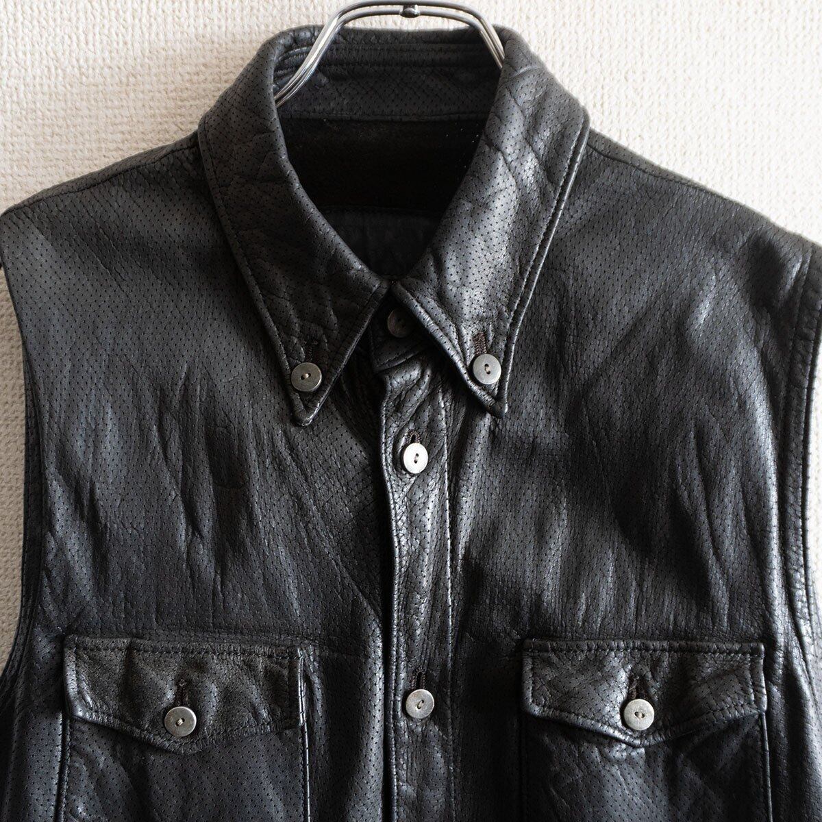 【雰囲気抜群】ISAMU KATAYAMA BACKLASH【パンチング レザー ベスト】L ブラック イサムカタヤマバックラッシュ 26010430