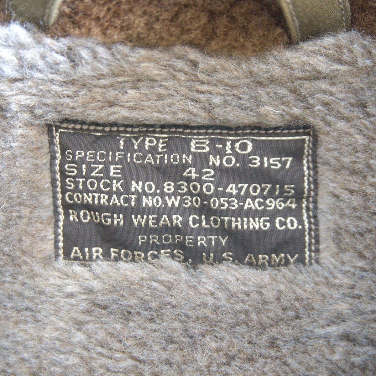 B-10は革製フライトジャケットの代替として1943年7月22日に米陸軍航空隊が正式採用した布製フライトジャケットである。ライニングにはアルパカモヘアウールパイルを使用しており保温能力が高い1着です。。お探しの方や気になる方は是非。