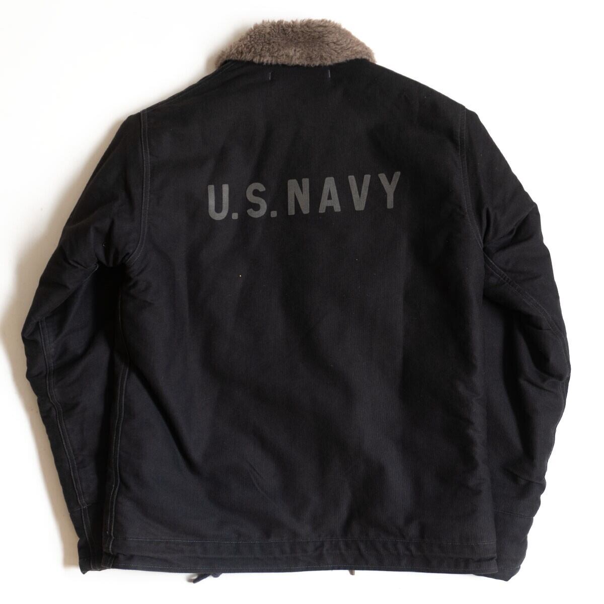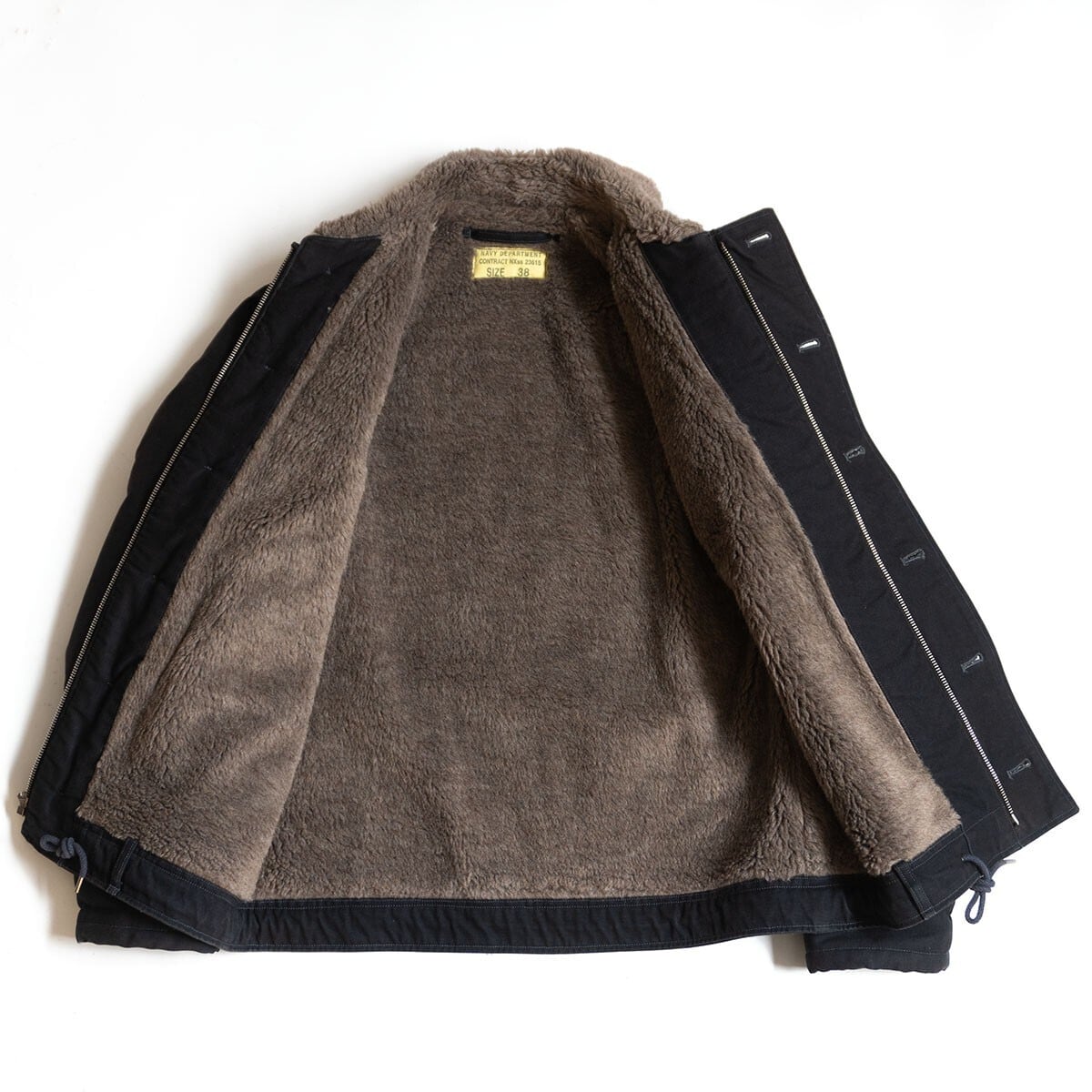 第二次世界大戦から朝鮮戦争にかけ米海軍の艦艇乗員用として採用されたN-1デッキジャケット。こちらの表素材には他のデッキジャケットと同様で通称"ジャングルクロス"と呼ばれるコットングログランが使用され、裏地には遮風性と保温性に優れたアルパカ・コットン・ウールパイルが使用されています。防寒性抜群の1着です。
