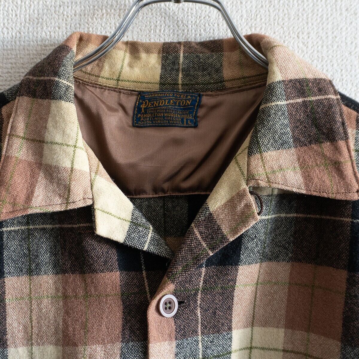 【50s/ヴィンテージ】PENDLETON【オープンカラー ウールチェックシャツ】L ペンドルトン 26010568