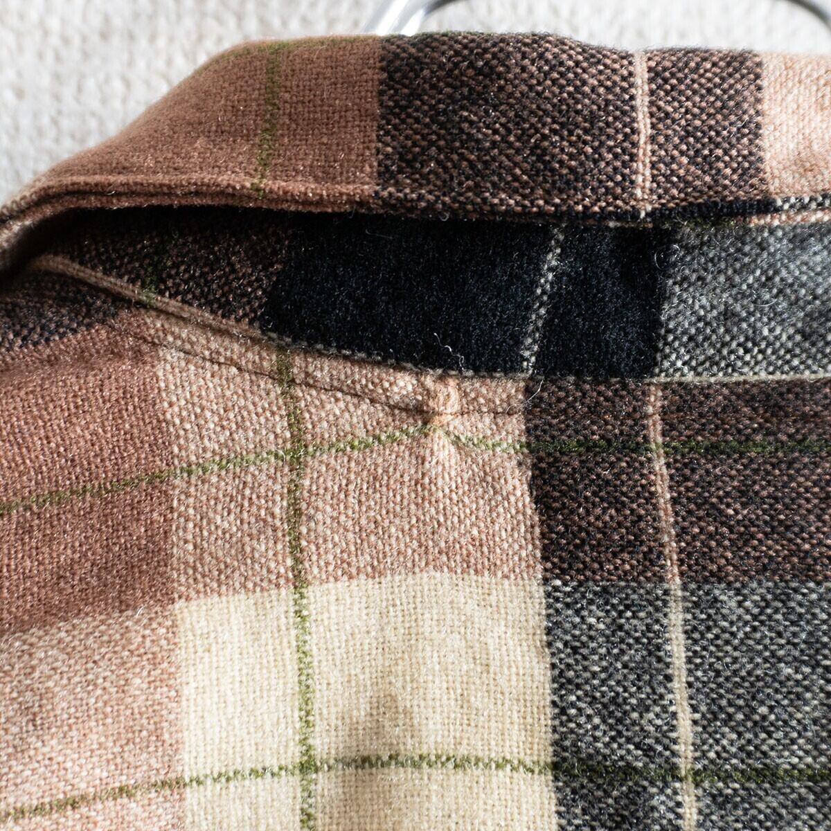 オープンカラー ウールチェックシャツ
