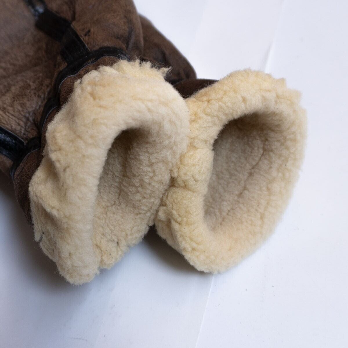 ボディには肉厚ながらモチっとした弾力性を持つ上質のシープスキン(羊革)が使用されております。裏地にはふかふかのムートンボアが敷き詰められ最高の着心地・防寒性を誇ります。良いものをお探しの方は是非。