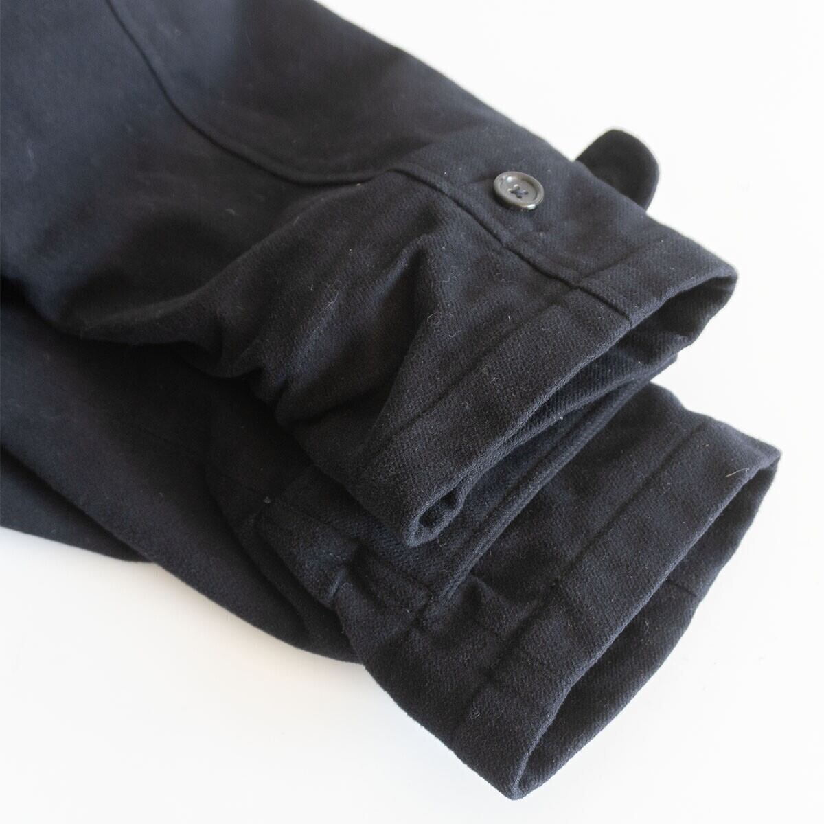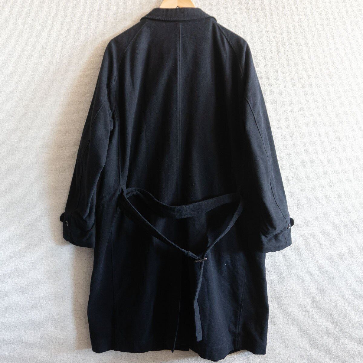 旧いディスパッチコートをコットンフランネルを用いてシンプルなシングルコートに再構築厚手のコットンフランネル素材を使用しています。お色はブラックです。
