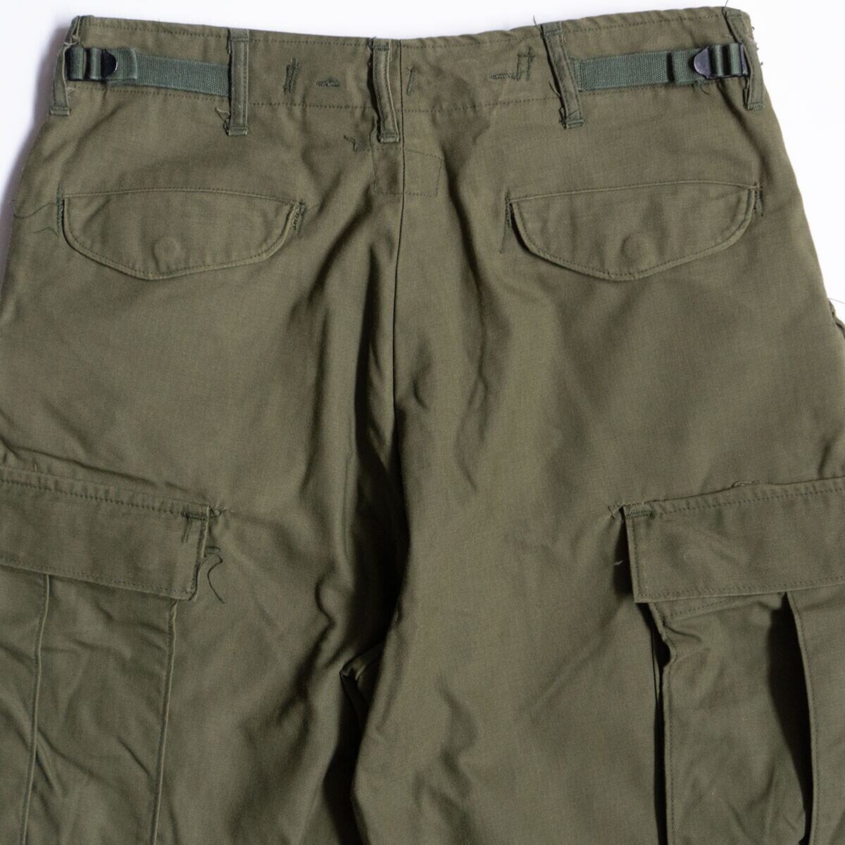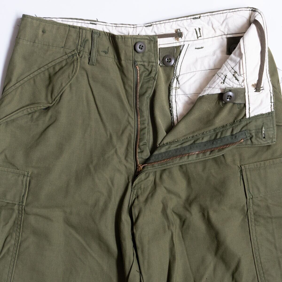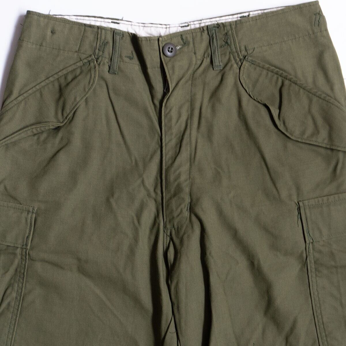 アメリカ軍が1965年に採用したフィールドパンツ M-65。多くのブランドがこれを元にカーゴパンツをリリースしています。ズドンとしたストレートシルエットが魅力です。計6つのポケット。全てフラップ付きでスナップボタンで留められます。ジッパーフライ、ウエストのサイド部分にはアジャスターが付いています。お探しの方や気になる方は是非。