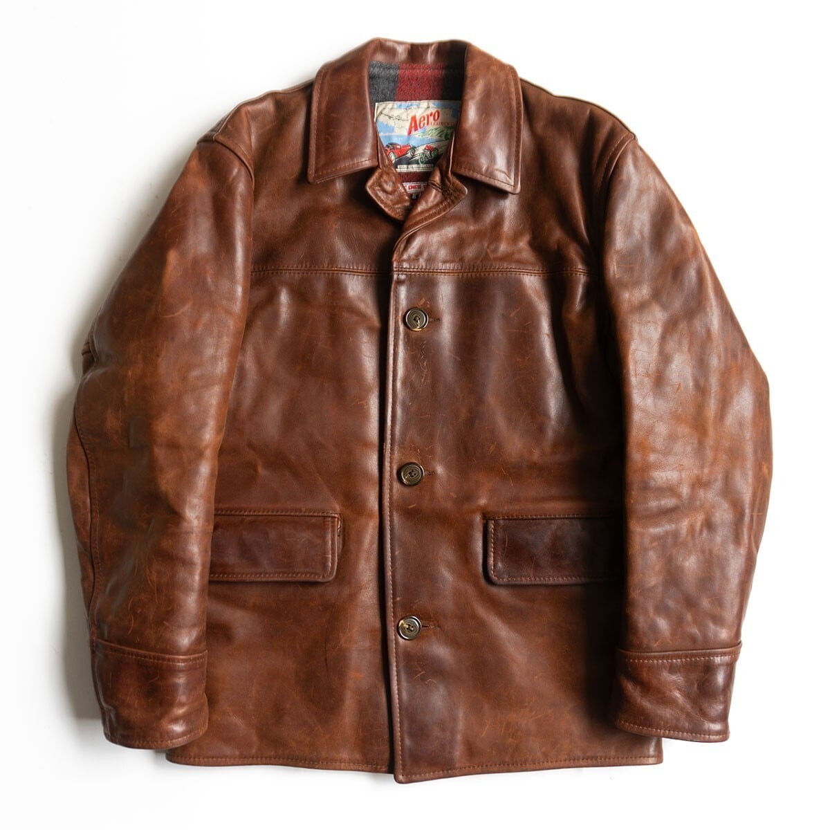 【雰囲気抜群】AERO LEATHER【ホースハイド カーコート】40 ブラウン レザー エアロレザー 26010653