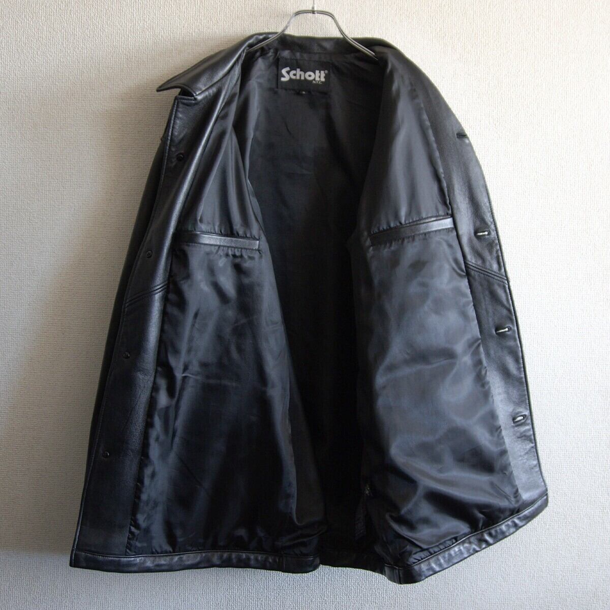【美品/ビッグサイズ】SCHOTT【LOOSE FIT LEATHER COAT】XL ブラック ラムレザー ショット 26010562