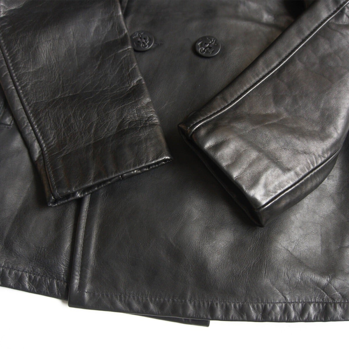 肉厚なレザー使用したピーコート。お探しの方や気になる方は是非。