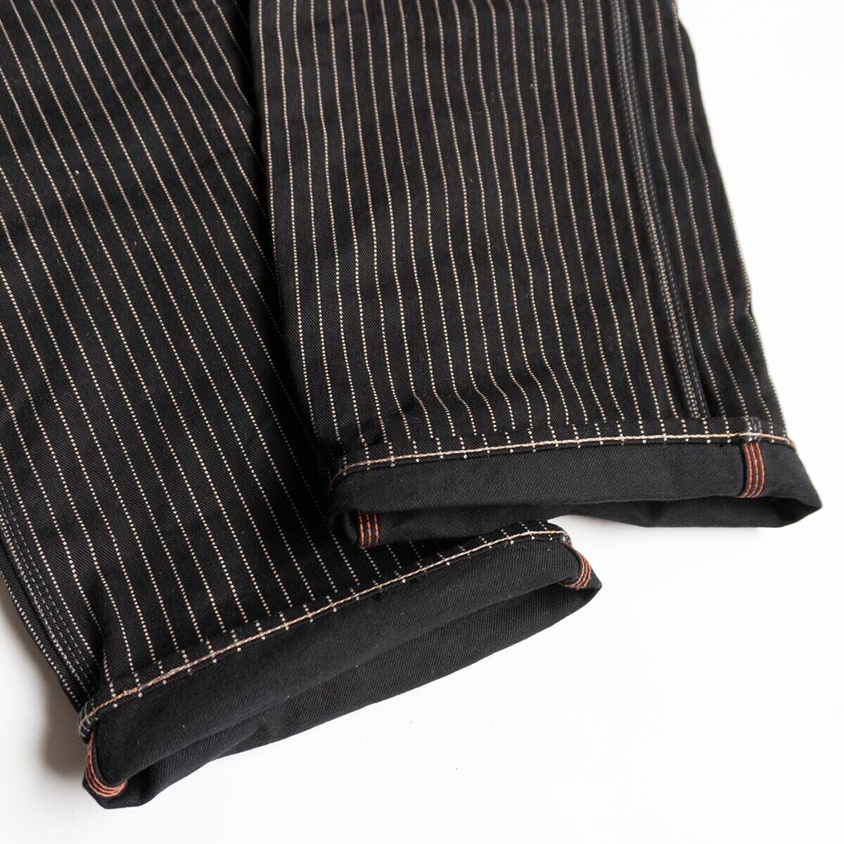 しっかり染めた経糸と緯糸で織り上げ昔ながらの抜染手法でドットプリントを配した12oz素材。右足にスケールポケット、左足にハンマーループを装備。リベットは昔ながらの真鍮色の無地タイプを採用。スッキリしたシルエットで、各部の縫い合わせをワークパンツらしく強度のある3本ステッチで縫い上げています。お探しの方や気になる方は是非。