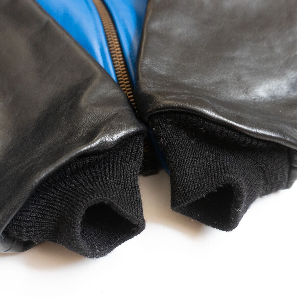 【美品】 VANSON 【TJV オールレザー スタジャン】38 ブルー ブラック ジャケット ワッペン USA製 バンソン 26010845