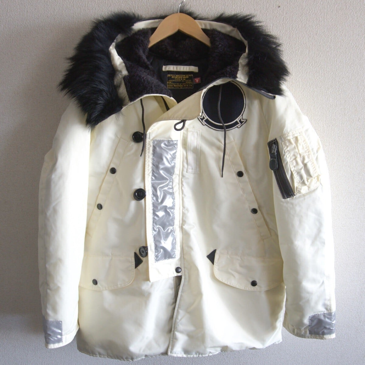 ミリタリーアイテムを象徴する「N-3B」をベースに製作されたこちらの一着は、羽毛のように軽くて暖かい高機能素材のプリマロフトを中綿に使用しています。また、本来のセージグリーンからホワイトのナイロンファブリックへシフト。ミリタリーらしいディテールは踏襲しつつも、よりファッショナブルな「N-3B」へ昇華されています。