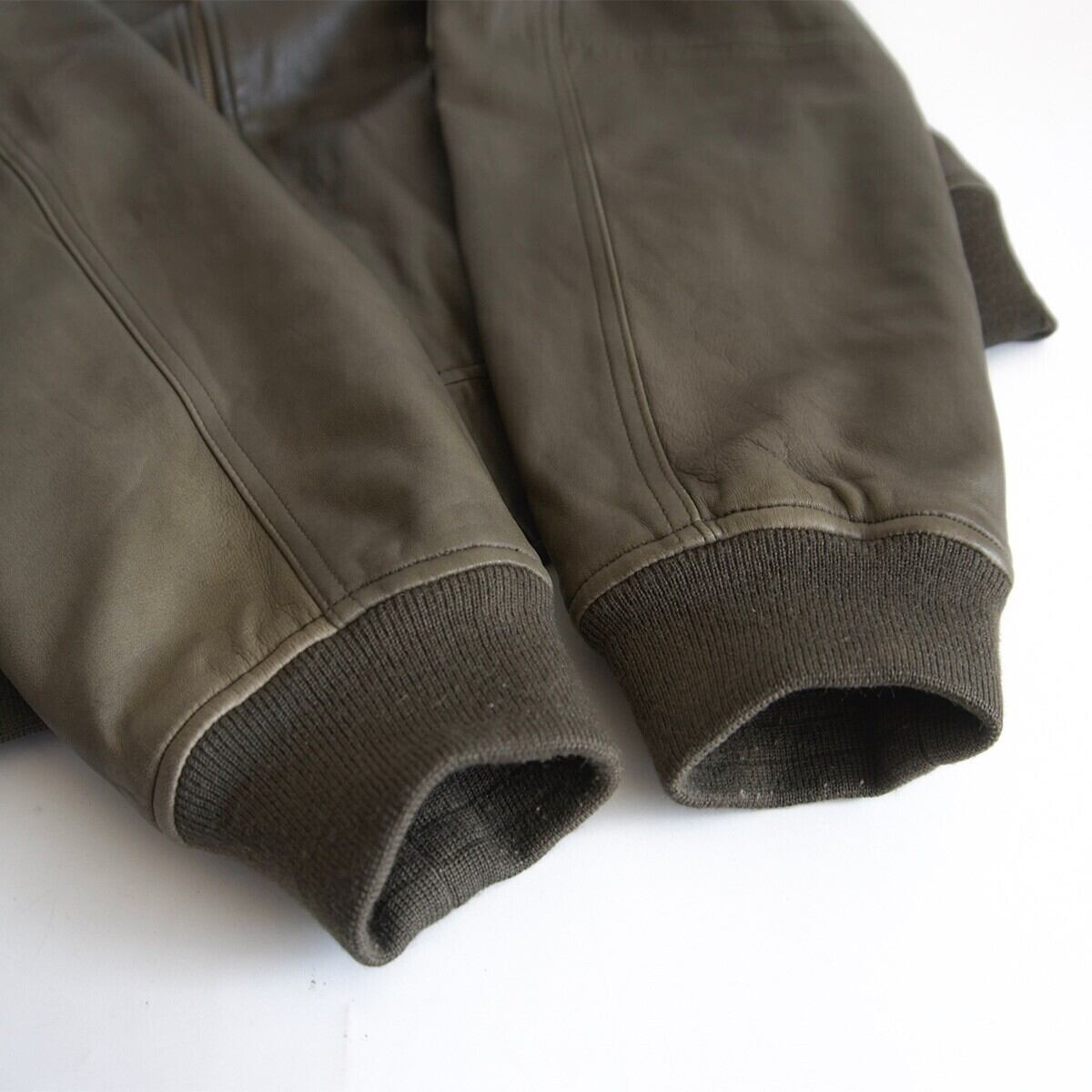 希少なレザーのMA-1フライトジャケット。お色はダークグリーンです。