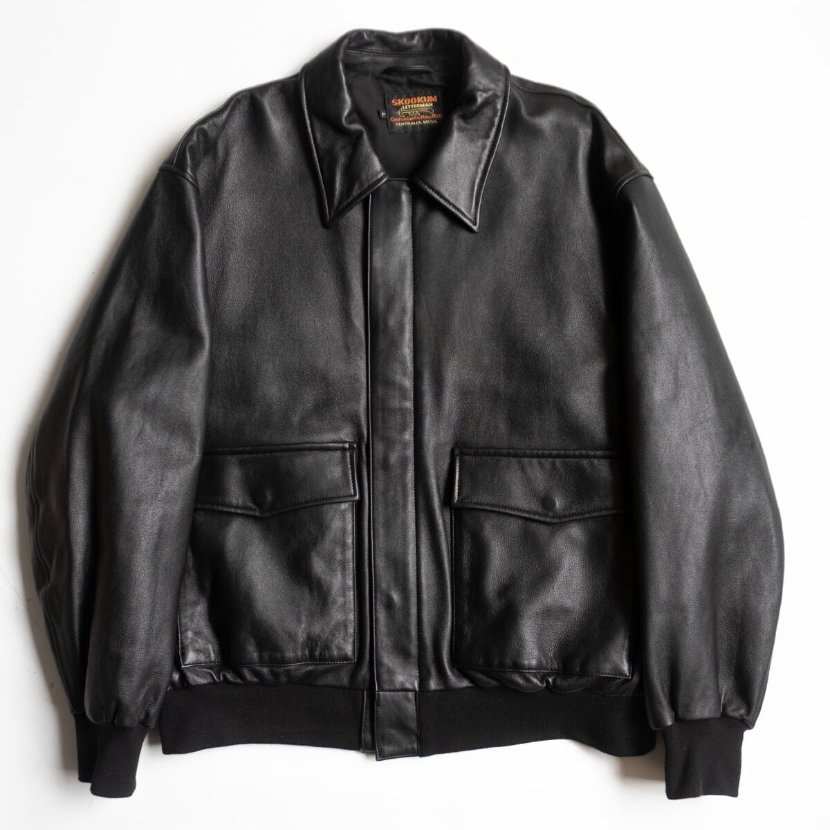 【美品/relume JOURNAL STANDARD別注】SKOOKUM【A-2 レザー フライトジャケット】L スクーカム ブラック 26020175
