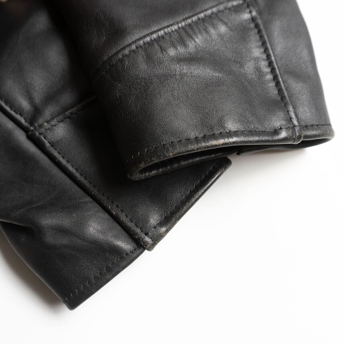 襟のあるシングルレザージャケット。シンプルなデザインで着まわしやすい1着です。お探しの方や気になる方は是非。