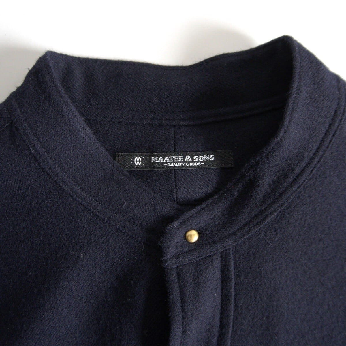 上質なウール素材を使用したバンドカラーシャツです。お色はネイビーです。