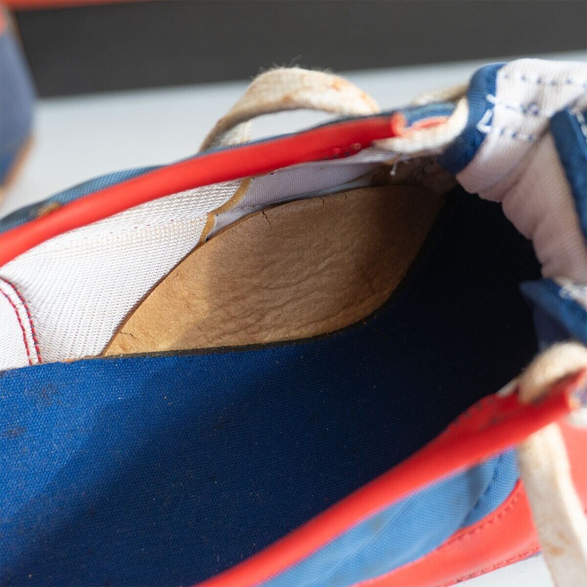 デッドストック品でございます。保管時の擦れや汚れやソールや中の土踏まずの硬化がございます。40年近く前の物になりますので、着用時の補償はありませんのでご理解の程お願いいたします。※箱は違うモデルの物です。神経質な方はお控え下さい。