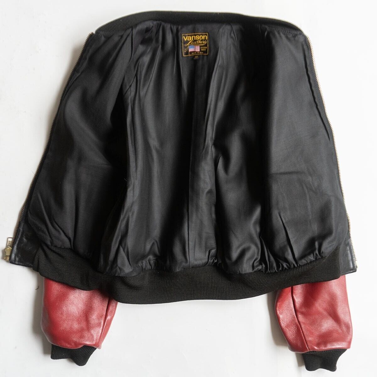 【美品】 VANSON 【TJV オールレザー スタジャン】40 レッド ブラック ジャケット ワッペン USA製 バンソン 26020248