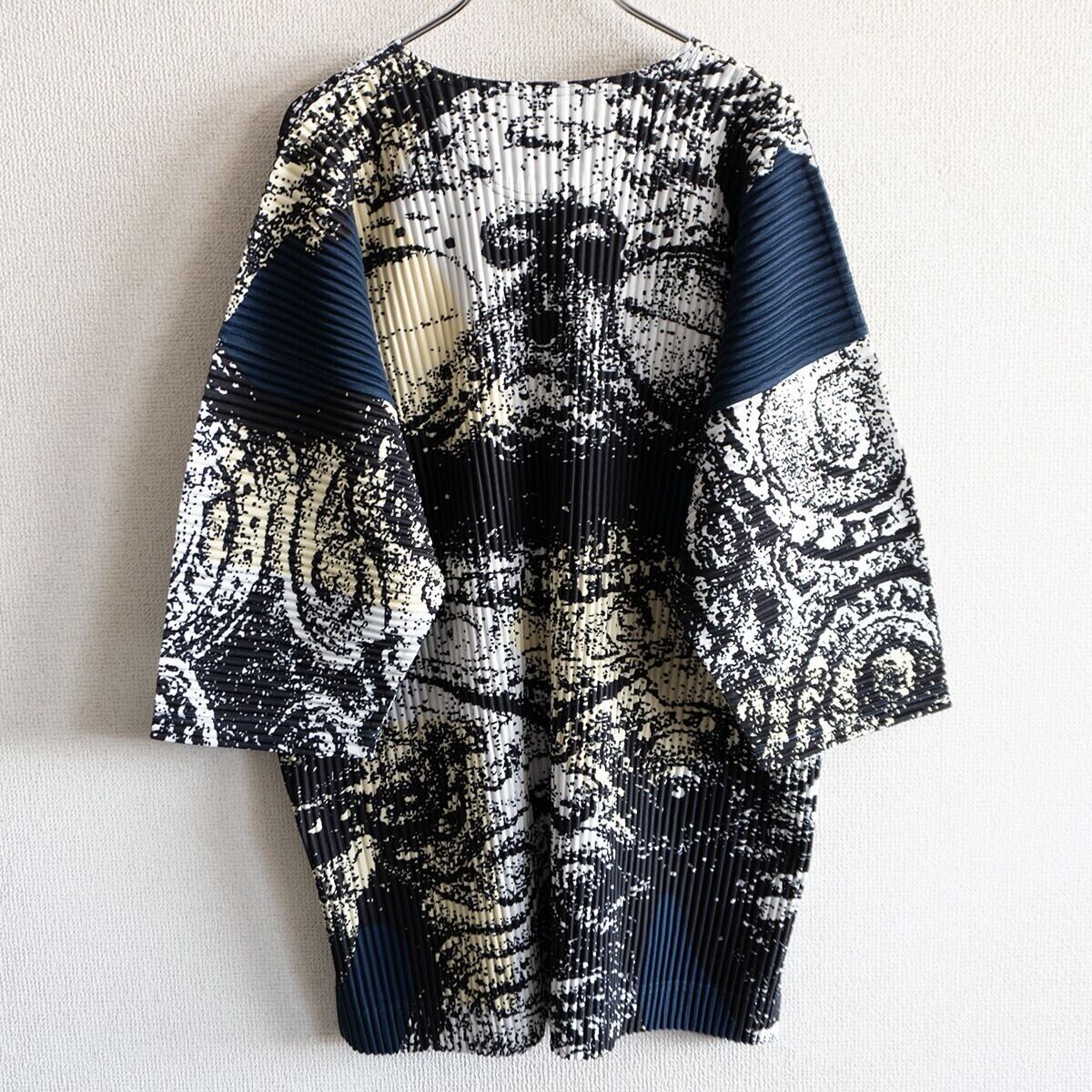 【美品】 HOMME PLISSE ISSEY MIYAKE【総柄 プリーツ カットソー】2 オムプリッセ イッセイミヤケ 26020415