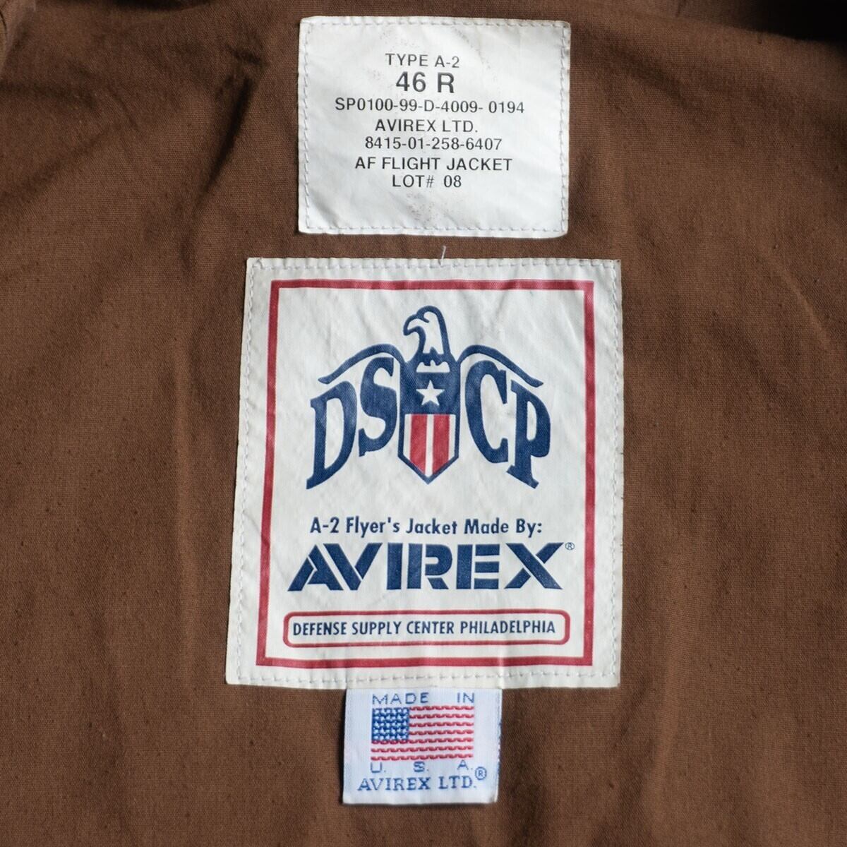 【美品/ビッグサイズ】AVIREX【A-2 レザー フライトジャケット】 46R ブラウン アビレックス 26020385