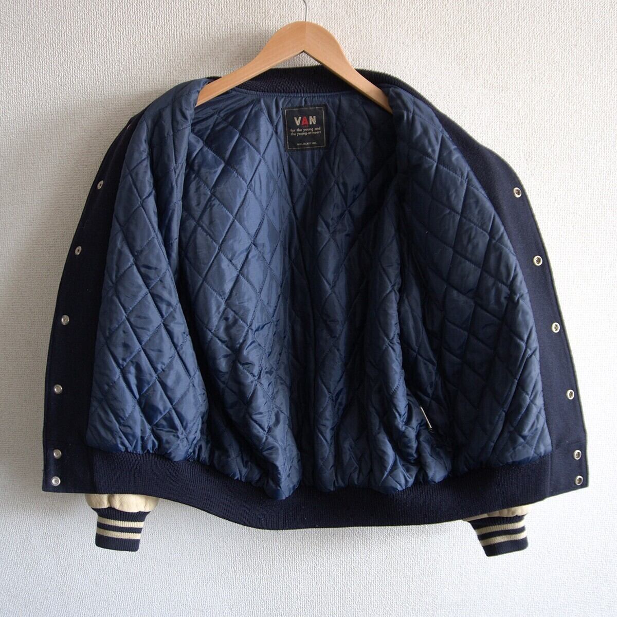 【雰囲気抜群】VAN JAC【袖レザー スタジャン】M ヴァン ワッペン スタジアムジャンパー レザー 26020420