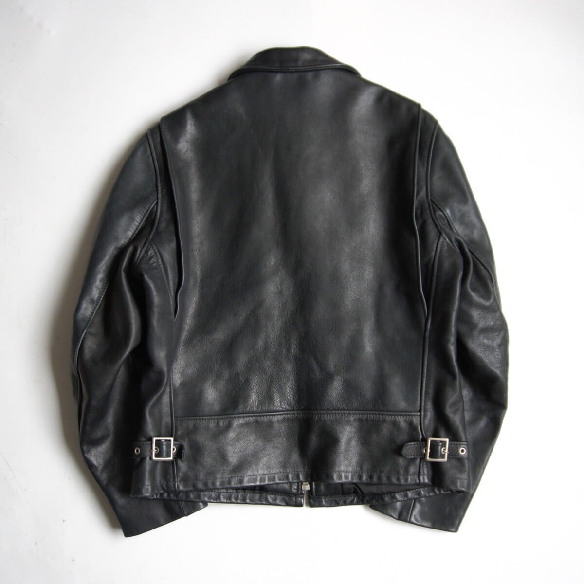 襟のあるシングルレザージャケット。シンプルなデザインで着まわしやすい1着です。お探しの方や気になる方は是非。