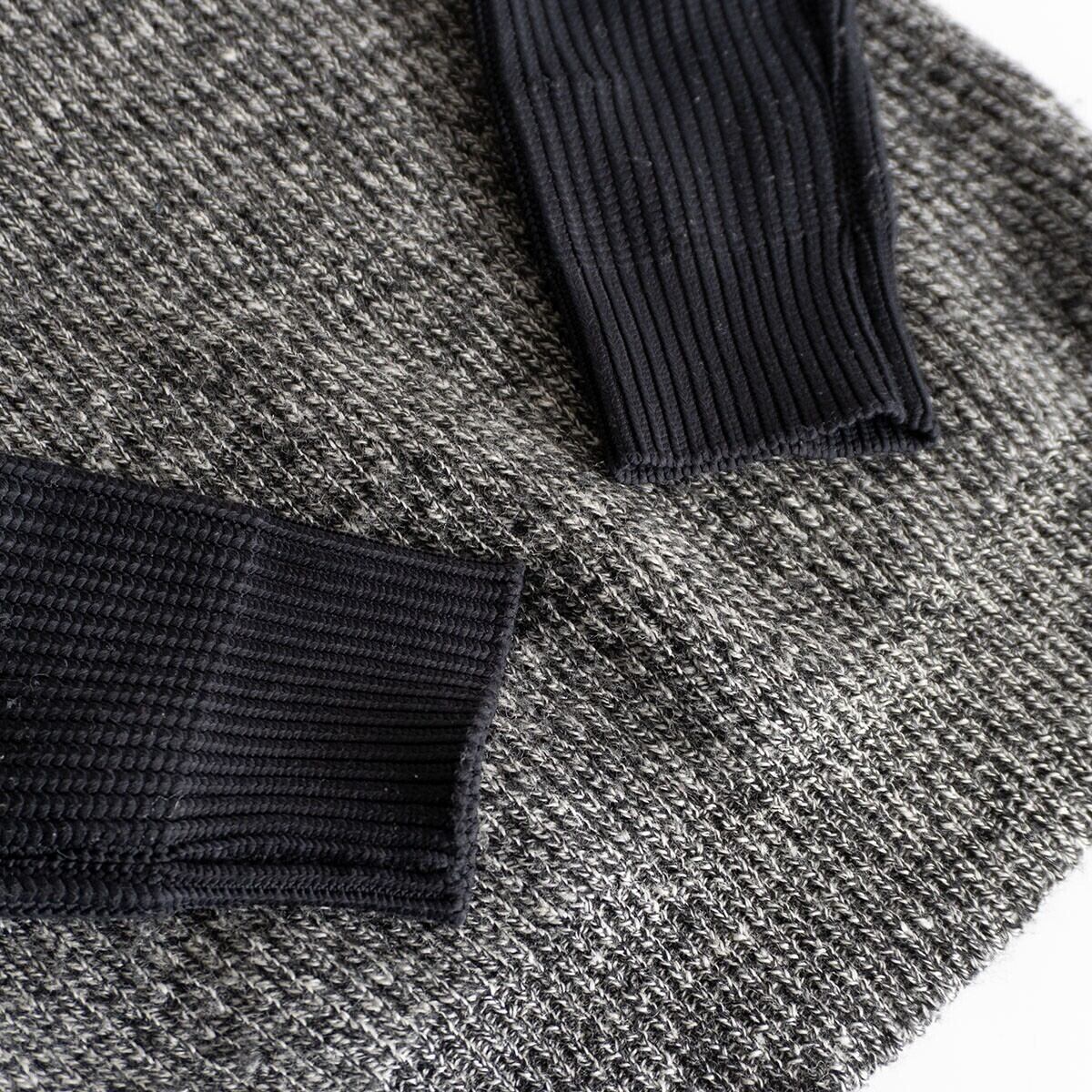 袖切り替え素材のタートルネックニット。お色はグレー×ブラックです。お探しの方は是非。